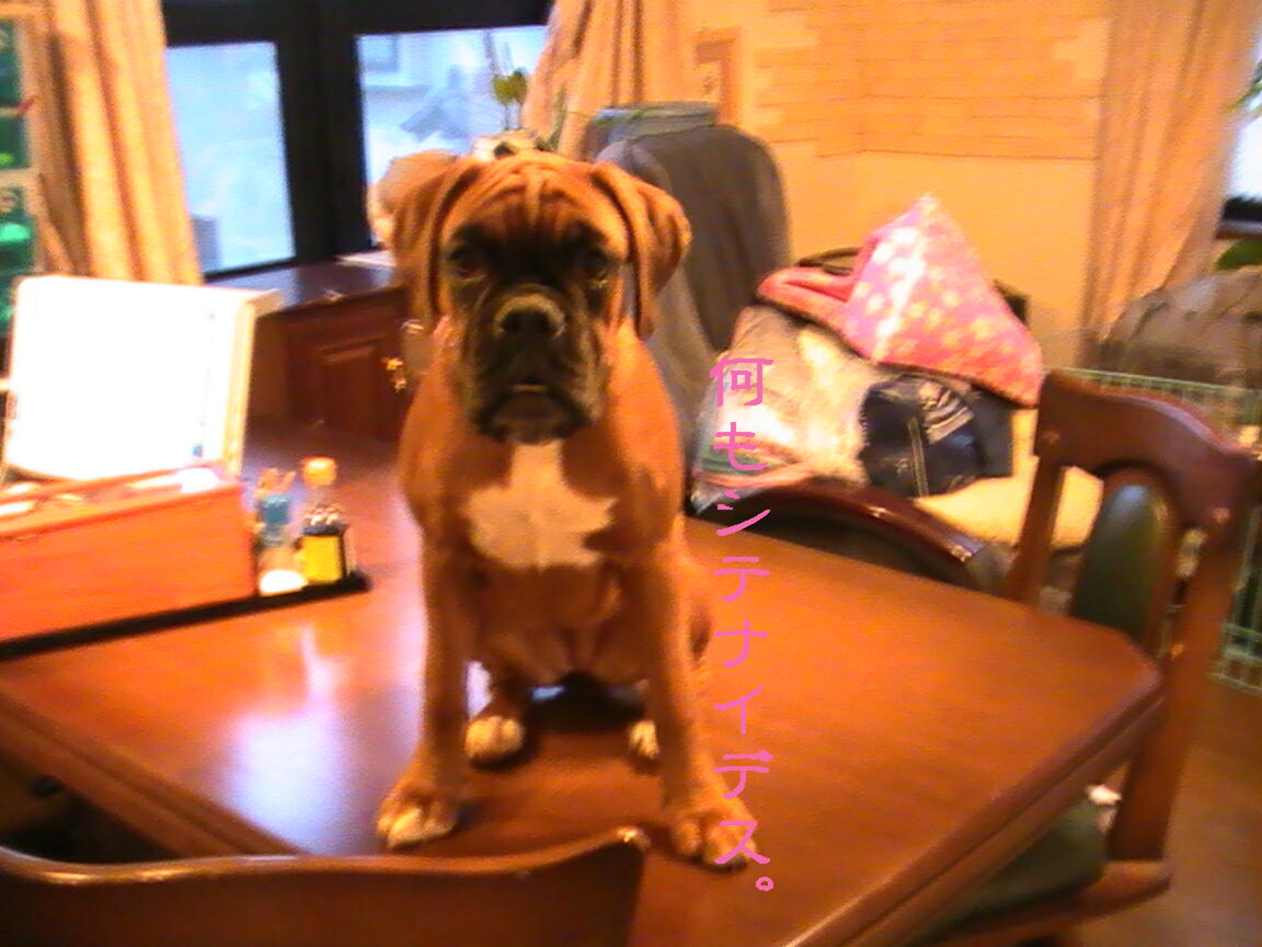 興奮した愛ちゃんが、食卓テーブルの上にビヨ~ンっと飛び乗ってしまってびっくりしましたよ。