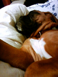 朝4時ころなぜか飼い主目が覚めて、アイサにしっこをさせ、その後朝9時までみんなでお寝坊。