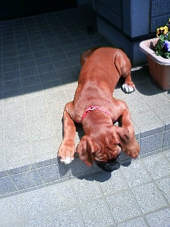 お食事もすんで、愛ちゃんを庭に出してう◎ちをさせようと思ったんです。
