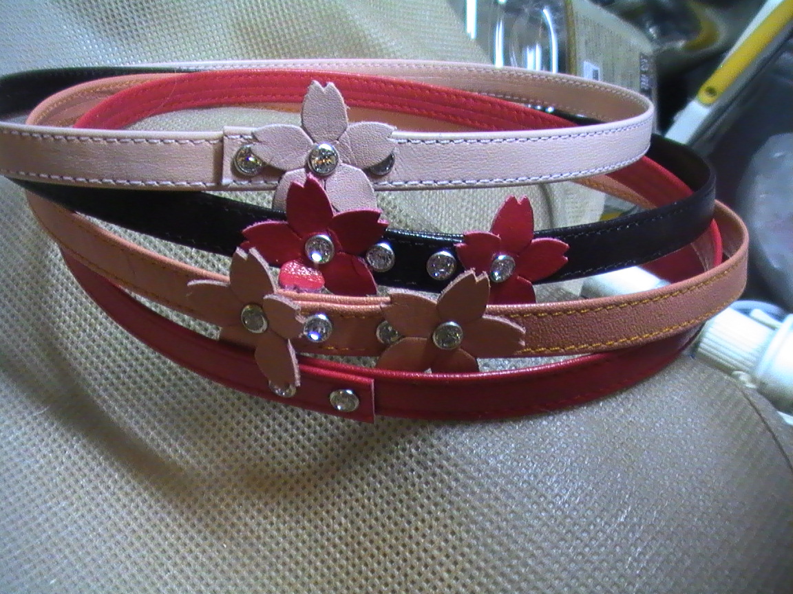 色は焦げ茶、ピンク、ブルー、オレンジ、赤。