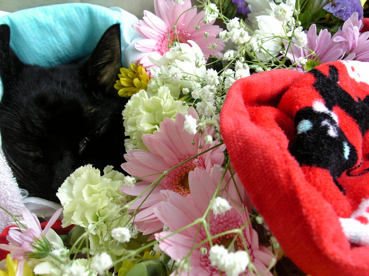 亡くなったって電話があって、すぐに仕事をほっぽって迎えにいったんですけど、その前にきれいなタオルで包んであげたいと思って、いつも行くセレクトショップによって、黒猫のイラストがついている赤いタオルを買いました。
