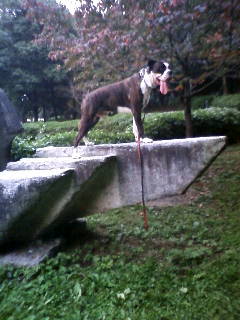 ちょっと飛びかかろうとした小型犬に反応して行こうとしたところを軽く静止すると、すぐに聞き分けてくれて、大人しくテーブルの間を歩くことが出来、自分の犬ながらびっくりです。