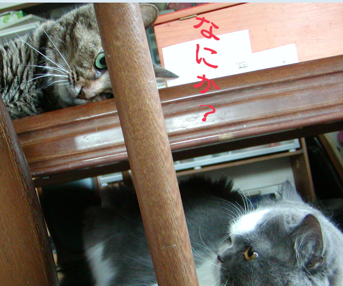 まあこの二人、仲良くないといっても、同じテーブルで寝たり、同じ階段に並んでご飯を食べたりするので、険悪な仲というわけではない。