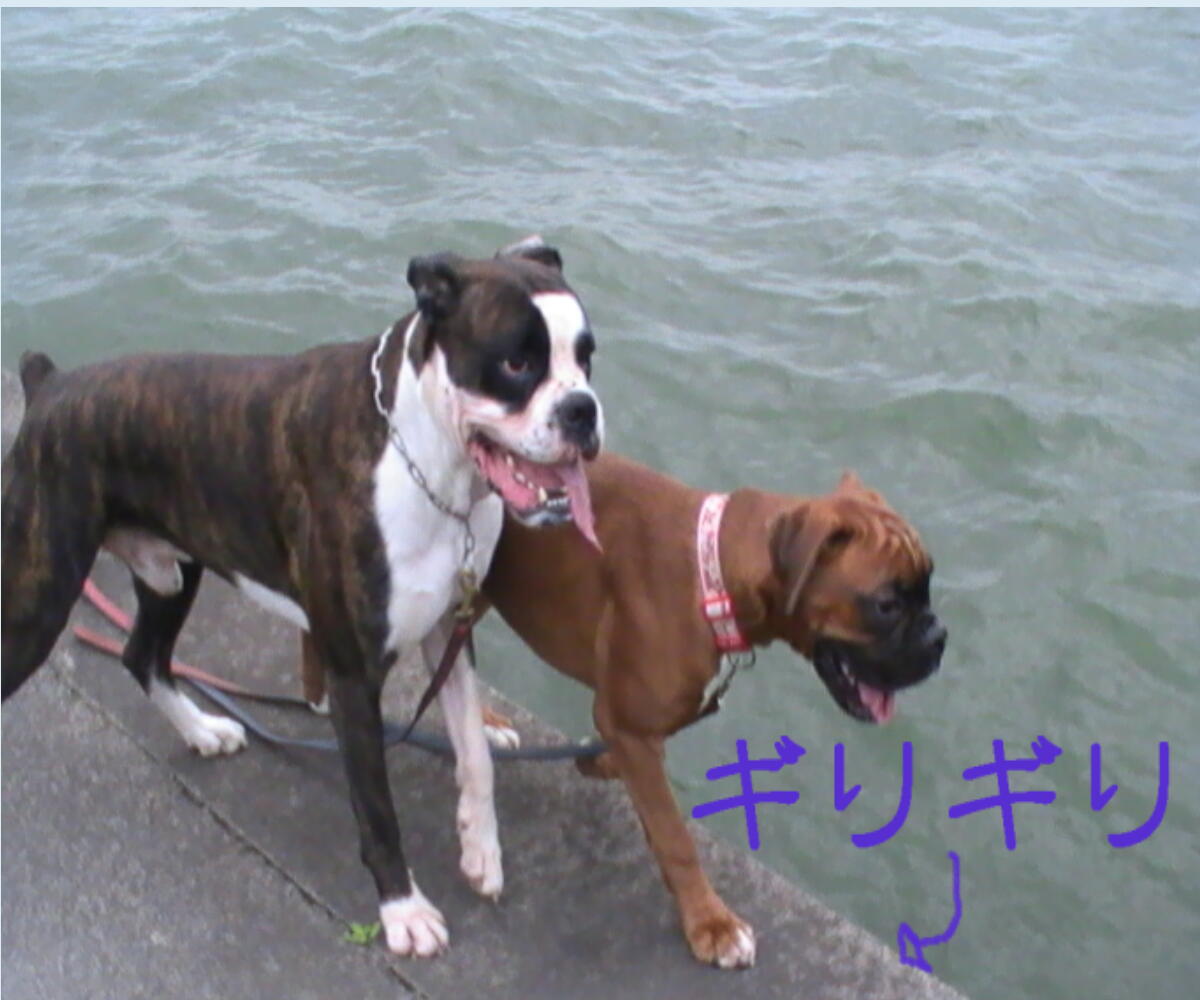 泳いで戻ったけど、50センチくらいの段差があり、自分では上がれず、これもリードをもっていたので、引き上げる。