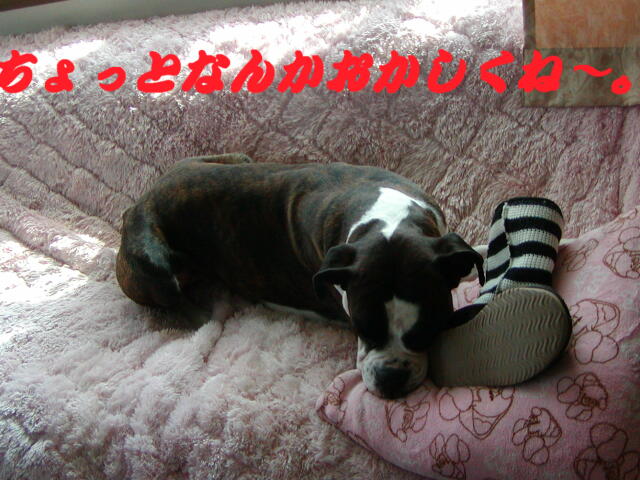拾ったそうで、ブリーダーもわからないらしいけど、アメリカンの5歳の子だ。ボクサーは苦手だそうだが(笑)愛咲と遊んでくれた。